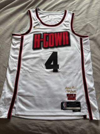 Camiseta de baloncesto de Jalen Green de los Houston Rockets de la temporada 2024/25 Classic Edition, talla L. Comprada en verano de 2025 en Basketball Emotion (demostrable) Le quité la etiqueta pensando que le iba a dar uso pero se ha quedado en un cajón. Nunca ha sido usada ni lavada.