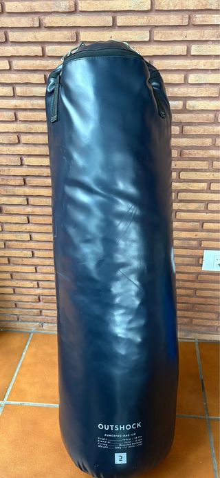 Saco de boxeo de la marca Outshock, modelo PUNCHING-BAG 120. Muy poco uso como se aprecia en las fotos y un estado excelente. - Peso: 20kg aprox. - Altura: 120cm. No envíos, solo Gran Canaria.