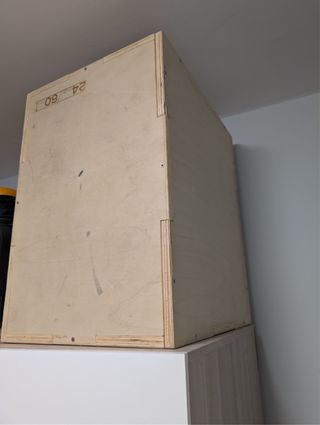 Cajón pliométrico de madera, ideal para entrenamientos funcionales y de fuerza. - Construcción robusta de madera contrachapada. - Medidas aproximadas: 24 pulgadas de alto x 60 cm de largo. - Acabado natural de la madera.