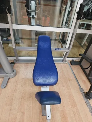 Equipo de gimnasio para entrenamiento de fuerza. - Estructura metálica robusta. - 1 press banca plano - 1 press banca inclinado * tapizado como nuevo. * se regala barra 300 euros cada uno.