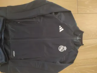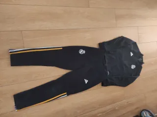 Conjunto de chándal del Real Madrid para niño 2023-2024. Talla 9-10(140) - Chaqueta con cremallera completa. - Pantalón con detalles de rayas. - Escudo del Real Madrid. - Logo de Adidas.