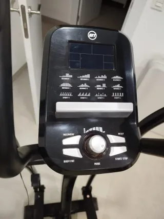 Elíptica de color negro, ideal para entrenamientos en casa. - Diseño moderno y funcional. - Pedales amplios y cómodos. - Manillar ergonómico. Se ha usado dos veces