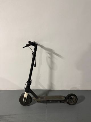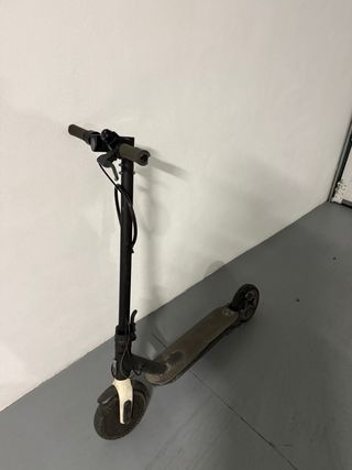 Patinete eléctrico para reparar o para quien necesite piezas. . - Estructura principal en color negro. -Funciona, se enciende y carga, pero el rodamiento de atrás está roto, es lo que habría q arreglarle
