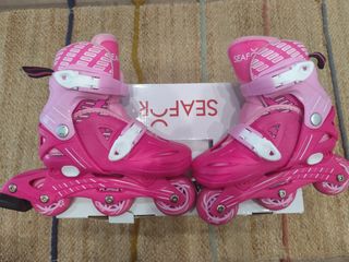 Patines infantiles de la talla 26 a la 30. Marca Seafor de Forum Combinables. Color rosa. Se entregan con caja,casco y protecciones Muy poco uso.
