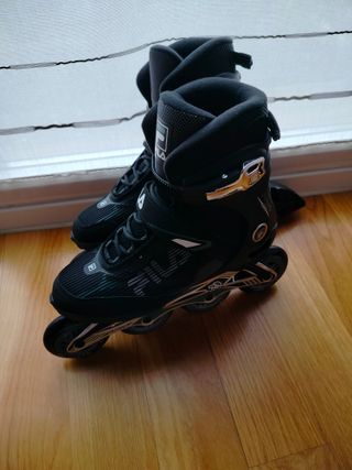 Patines en línea de la marca Fila en talla 40. Diseñados para ofrecer comodidad y estilo. - Color negro. - Cierre con cordones y hebilla.
