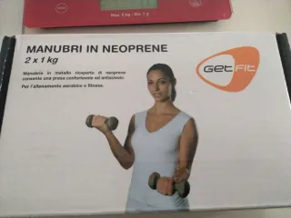 dos mancuernas de 1 kg cada una, recubiertas de neopreno.para un agarre cómodo.