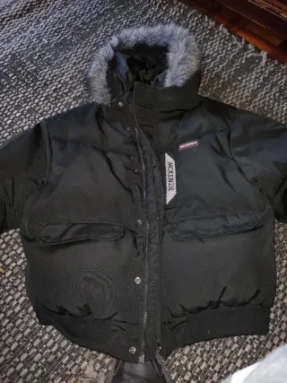 Chaqueta negra de la marca McKenzie con un diseño acolchado y capucha. - Capucha con detalle de pelo sintético. - Cierre de cremallera frontal. - Bolsillos laterales con solapa. - Parche de la marca en el pecho.
