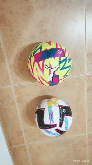 Dos balones oficiales de fútbol de La Liga. - Diseño vibrante y moderno. - Logotipo de La Liga visible. - 20€ unidad.