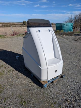 Consola de fibra nueva, lista para instalar. - Material: Fibra de vidrio. - Color: Blanco brillante. - Diseño moderno y aerodinámico.