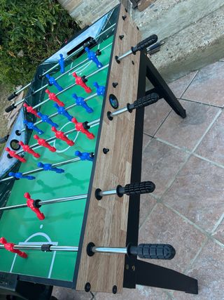 Se vende futbolín y mesa de billar. - Diseño de madera. - Jugadores rojos y azules.