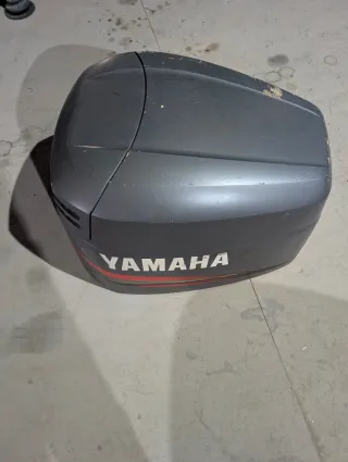 Capota para motor fueraborda Yamaha V8 de 350 CV. Diseño aerodinámico y acabado en gris metalizado. - Logo Yamaha en relieve. - Entrada de aire frontal. Tiene arañazos superficiales, no hay rotura, las cogidas están bien