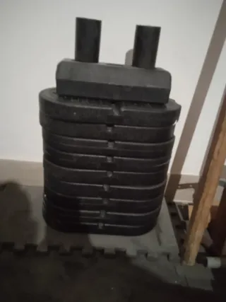 Conjunto de placas de peso para máquina de gimnasio multifunción. Ideales para complementar tu equipo de entrenamiento en casa. Cada placa pesa 5kg (10 placas): - Fabricadas en material resistente. - Diseño compatible con máquinas multifunción.
