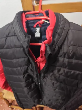 Conjunto de chaleco acolchado negro con interior rojo. - Chaleco negro. - Interior rojo. Talla XL entallada Incluye envío por agencia