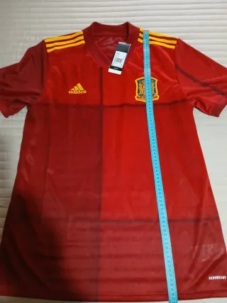 Camiseta de la Selección Española de fútbol. ORIGINAL ADIDAS. Talla L, a estrenar, medidas en fotos - Color rojo con detalles amarillos. - Logo de Adidas y escudo de la selección.