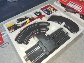 Lote de Scalextric Compact con coches y pistas. Son dos cajas. - 3 coches funcionan y el fórmula uno está roto, son un montón de pistas y el turbo Twister completo. Incluye pista cuentavueltas y algunas pistas extra más, no todos los mandos funcionan, pero dos o tres si. Lleva 3 transformadores, uno de ellos más grande para hacer mayores pistas.