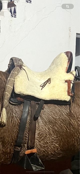 Montura vaquera de fibra de guardicioneria los nietos - Incluye cincha, acciones y estribos de plásticos - Diseño tradicional y cómodo. - Ideal para equitación campera.