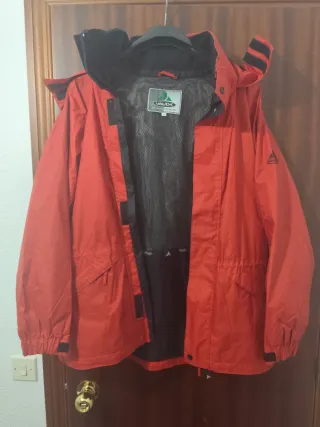 Chaqueta de montaña Vaude en color roja y negra. Diseño con capucha y cintura ajustable. Chaqueta VAUDE talla M Chaqueta fantástica, ideal para senderismo y actividades al aire libre, ¡y para usar a diario! Con una segunda capa es ideal para deportes de alta montaña. - Dos bolsillos exteriores y uno interior en solapa - Presilla elástica en cuello, cintura y bajo. - capucha con visera para lluvia y nieve. - forro de malla - solapas axilares con cremalleras para evaporación del sudor. El precio incluye envío por agencia.