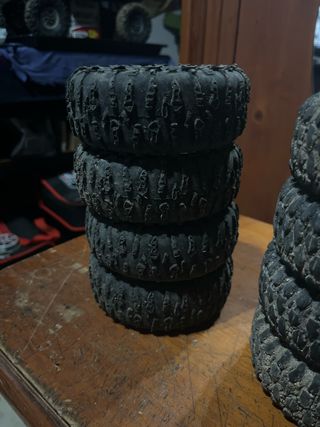Juego de 8 ruedas 1.9 para coche crawler a escala 1/10. Diseñadas para ofrecer un buen agarre en terrenos difíciles. - 1 juego va sin foam - Diseño de tacos agresivo para tracción. - compuesto blando - Compatibles con la mayoría de chasis <<<<< ESCUCHO OFERTAS >>>>>