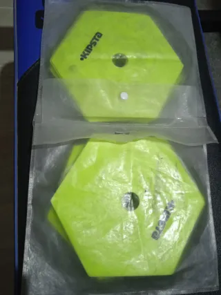 Set de conos señalizadores planos con forma hexagonal. Incluye 10 conos. - Color: Amarillo fluorescente. - Marca: Kipsta.