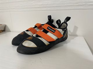 Pies de gato Tenaya RA. Practicamente nuevos, usados 4 veces en roca. No me hago a ellos - Talla 43 1/4. - Cierre con velcro. - Diseño en blanco, negro y naranja.