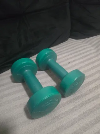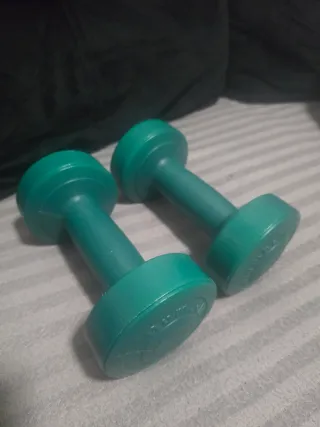 Par de pesas de color verde, ideales para ejercicios en casa. - Diseño ergonómico. 1 kl - Material duradero.