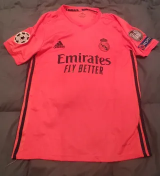Camiseta de fútbol del Real Madrid, talla M. Diseño en color rosa - Parche de la Champions League. - Parche de 'Respect'