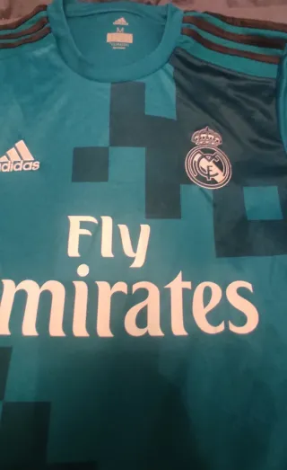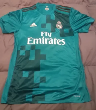 Camiseta de fútbol del Real Madrid. - Color verde azulado con diseño de píxeles. - Camiseta oficial sin dorsal