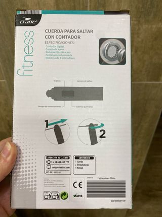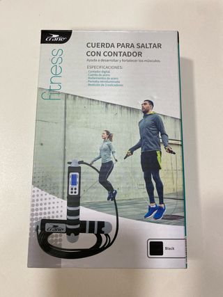 Cuerda para saltar de la marca Crane, ideal para entrenar y mejorar la resistencia. - Contador digital integrado. - Cuerda de acero. - Rodamientos de acero. - Pantalla retroiluminada. - Medición de 3 indicadores. - Color: Negro.