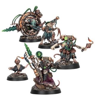 Banda Skaven para Warhammer Underworlds compuesta por 5 miniaturas de los Tuneladores de Zikkit en plástico de color verde Van con sus cartas correspondientes. Nuevas a estrenar en su matriz