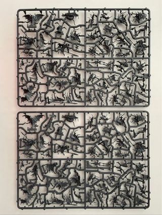 2 Matrices de la caja Cursed City Ciudad Maldita para montar : 10x Deadwalker Zombies, 10x Ulfenwatch, 6x Corpse Rats, y 6x Bat Swarms. Ademas de : 10x Mysterious Objects: 2x Gnawbone Strays, 2x Diregoyles, 2x Gravestones 2x Crows, y 2x Gibbets.