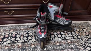 Patines en línea en buen estado, con muy poco uso. - Menos de una docena de puestas. - Diseño deportivo en rojo, gris y negro. - Cierre de velcro y cordones. - cierre frontal con carraca