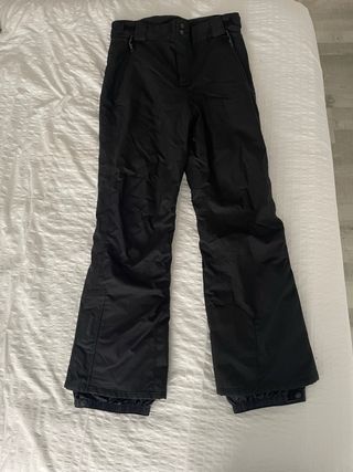 Pantalones de esquí negros, todo impermeable. Estan nuevos sin usar, con sus etiquetas todavia sin quitar. Talla 42 - Cremalleras en los bolsillos. - Velcro para ajuste de cintura - Detalle de logo en la pierna. - Puños interiores en los tobillos.