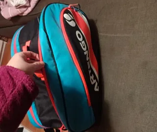 Paletero de la marca Artengo, ideal para transportar tu equipación deportiva. - Diseño en color azul, negro y naranja. - Cremalleras resistentes. Con uso algún roce por lo demás genial