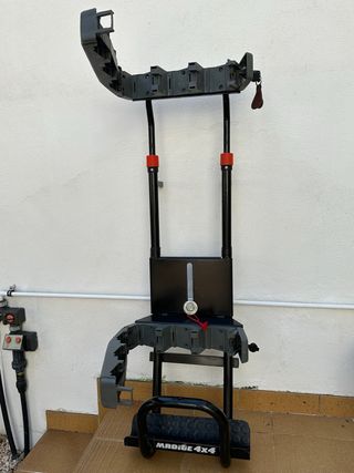 Portaesquís diseñado para ser montado en la rueda de repuesto de vehículos 4x4. Permite transportar tus esquís de forma segura y cómoda. - Estructura robusta de metal - Incluye sistema de cierre con llave. - Compatible con la mayoría de ruedas de repuesto de 4x4.