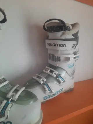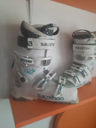 Botas de esquí Salomon Quest Access en color blanco y azul. Talla 26 equivale a un 39 muy comodas tiene alguna marca de uso pero están en perfecto estado regalo porta botas. Entrego en hospitalet de llobregat o posibilidad de entregar en finde semana en bielsa