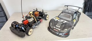 Escala 1/10, recien repasado y motor arrancado. Motor de competicion RB x12. con cambio de 2 velocidades. Estos modelos alcanzan los 120Km/h Completo con toda la electronica, cargadores, emisora, chispometro para la bujia, medio litro de combustible, biberon, mesa de arranque (sin bateria), chasis metalico y multiples repuestos. Para salir a rodar tal como esta. Lo entrego con una bolsa de multiples bolsillos donde poder llevarlo todo junto.
