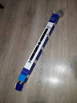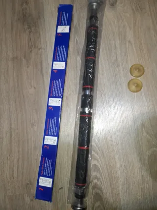 Barra de dominadas para puerta, fácil de instalar y usar. En perfecto estado. - Barra telescópica. - Empuñaduras acolchadas de goma. - Acabado en negro y rojo.