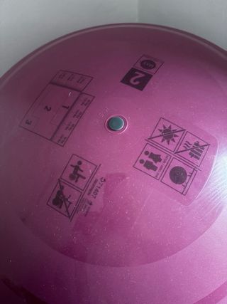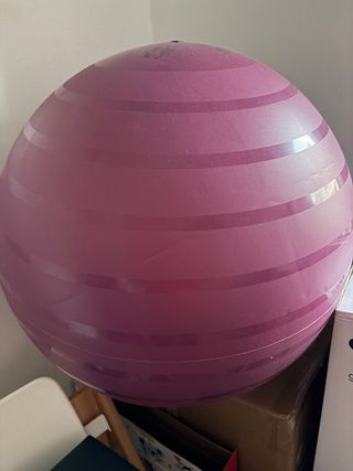 Pelota de pilates Decathlon en color morado, talla 2. Ideal para ejercicios de tonificación y equilibrio. - Diseño con bandas horizontales. - Material resistente.