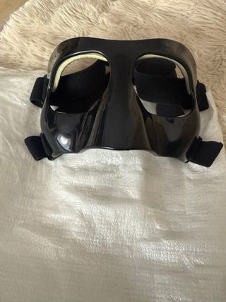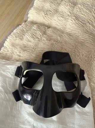 Máscara protectora de color negro con correas ajustables. - Diseño ergonómico. - Material resistente. - Cierre de velcro.