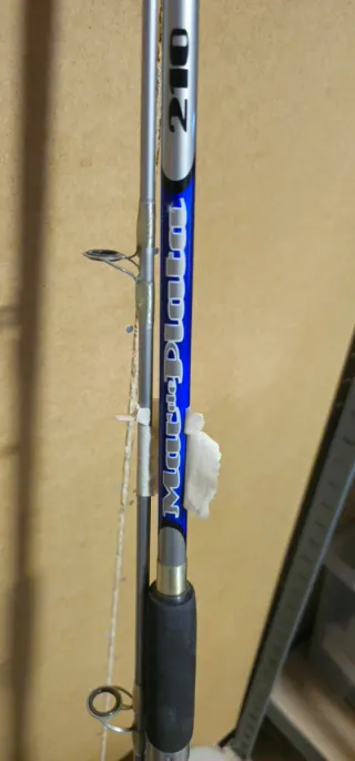 Caña de pescar de la marca Marte Plata con modelo 210. - Diseño en color azul y plateado. - Empuñadura negra. - Incluye anillas para la línea. -Carrete principal y uno de reserva con otro tipo de hilo. -Linterna frontal. Poteras,plomos,cebos y mas