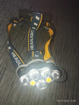 Linterna frontal con 8 LED de alto brillo. - Autonomía de 30 horas en uso continuo. - Tres tipos de iluminación. - Ideal para actividades al aire libre o trabajos que requieran iluminación manos libres.