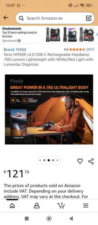 Linterna frontal Fenix HM50R v2.0, recargable por USB-C. - 700 lúmenes de potencia. - Luz blanca y roja. - Diseño ligero. - Incluye organizador Lumentac. Precio pvp 121€