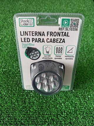 Linterna frontal con luces LED, ideal para actividades al aire libre o trabajos que requieran iluminación manos libres. Funciona con pilas. - Diseño ajustable a la cabeza. - Múltiples LEDs para mayor luminosidad.