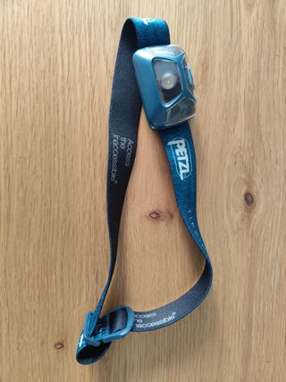 Linterna frontal de la marca Petzl, ideal para actividades al aire libre. - Correa ajustable con diseño. - Compartimento para pilas.
