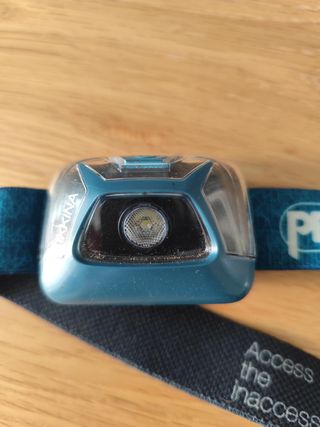 Linterna frontal de la marca Petzl, ideal para actividades al aire libre. - Correa ajustable para la cabeza. - Diseño ergonómico y ligero. - Lente reflectante.