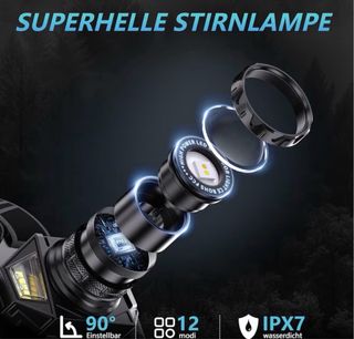Nueva a estrenar 12 modos a elegir y 90° ajustable, 120000 lux superbrillante y distancia de iluminación 1500 metros Brillo de blancos 120000 Lumen Linterna frontal multifuncional de grado industrial: linterna frontal con 100.000 lúmenes, 12 funciones en 1, resistente al agua IPX7, ajustable a 90°, carga tipo C y fuente de alimentación móvil de 6000 mAh, diadema altamente elástica y almohadilla de esponja, diseño de doble botón, indicador de potencia, etc. La linterna frontal es más ligera que la linterna frontal de aluminio y metal convencional y cumple con todas tus necesidades.
