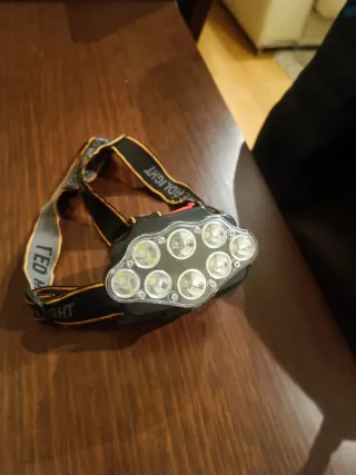 Linterna frontal con banda ajustable para la cabeza. Ideal para actividades al aire libre o trabajos en condiciones de poca luz. - 6 luces de zona y 2 luces led de proyección alcance 90 metros. -Recargable - Diseño ergonómico. -Perfecto estado