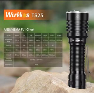 Linterna LED táctica Wurkkos TS23. Nueva. - Potencia de 5000 lúmenes. - Alcance de 482 metros. - Múltiples modos de potencia. - Batería recargable de litio 21700 de 5.000mAh. Acepta batería 18650. Una bestia de potencia. Perfecta tanto para excursionistas, vigilantes o para cualquier trabajo nocturno o que necesite gran potencia de luz. Mira mis votos para tu total tranquilidad. Preferiblemente entrega en mano. NO REGATEOS.