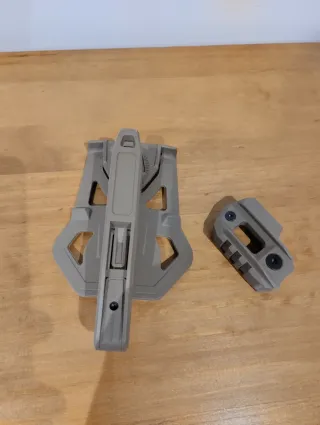 Holsrer de extracción rápida para Glock Airsoft estilo recover tactical. Color tan Es para cuerpos de Glock clasico (no vale para P80 o cuerpos de Glock con rail picatinny) Vale para diestro o zurdo. El anclaje tiene rail inferior para poder poner linterna y otros accesorios. Compatible con sistema Cytac y Ammomax (por si se quiere poner anclaje a cinturón o anclaje molle en lugar de la pala)