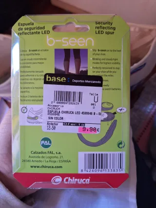 Espuela de seguridad con luz LED reflectante. - Diseño moderno y funcional. - Ideal para actividades nocturnas. - Marca: Chiruca.